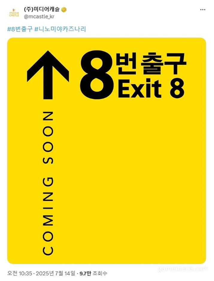 게임 ‘8번 출구’ 기반 실사 영화가 국내 개봉 소식을 알렸다. 영화 배급사 미디어캐슬은 공식 X를 통해 8번 출구 실사 영화가 곧 국내 개봉한다고 전했다. 정확한 개봉 시기, 배급 영화관 등 자
