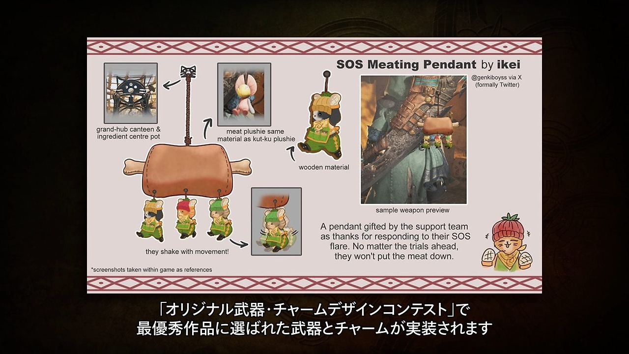 또한, 이전 개최된 '오리지 무기, 참 디자인 콘테스트'에서 최우수 작품으로 선택된 무기와 참이 적용된다. 깨진 거울과 같은 모습을한 대검과 잘 익은 고기를 운반하는 귀여운 아이루들을 모티브로한 참을 손에 넣을 수 있다.