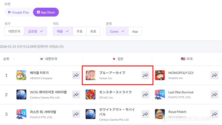 このような反応に力を得てブルーアーカイブは5周年アップデート直後の1月21日に日本アプリアップストア売上1位を達成した。ブルーアーカイブが日本アップル売り上げ1位を達成したことは今回で13番目だ。