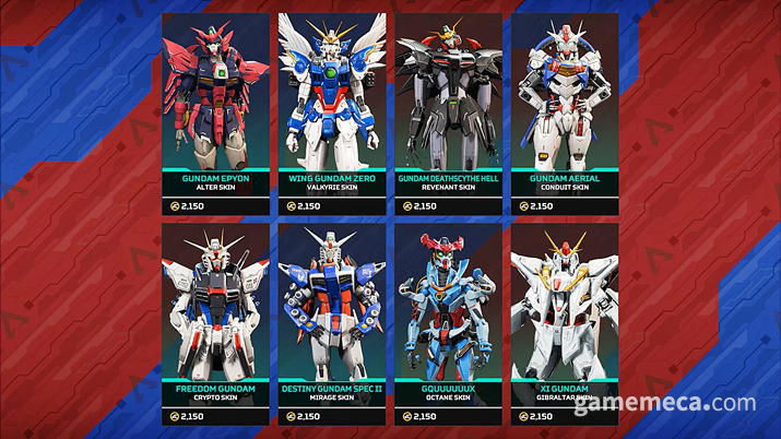 コラボに合わせたレジェンドスキンも多数公開された。アルターはガンダムエピオン、クリプトはフリーダムガンダム、ヴァルキリーはウィングガンダムゼロ、レヴァナントはガンダムデスサイズヘルなどの全8種のレジェンドスキンがリリースされた。続いて、補償商店でシャア・アズナブールから霊感を受けたスパロウスキンも会える。